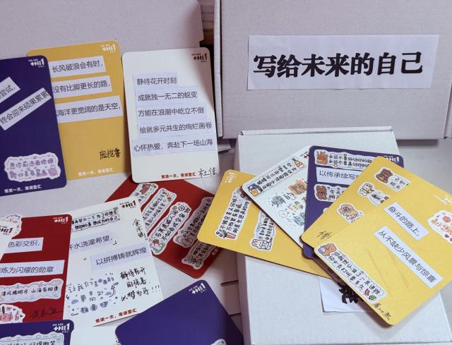 最温柔的时刻藏在 “写给未来自己” 环节里。孩子们伏在桌前:“奋斗的路上从不缺少风景与惊喜”“每一次大胆尝试,终会迎来硕果累累”一字一句都是对未来自己的期许,这些封藏着憧憬的卡片,将在明年的活动中启封,成为连接现在与未来的时光纽带。