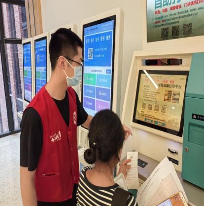 穿上志愿者马甲的那一刻,孩子们的眼睛里就闪烁起认真的光芒。岗前培训课上,王颖老师细致入微地讲解了浙壹汇的功能、门诊就诊全流程与志愿服务规范,小志愿者们挺直小身板,把 “引导患者三步骤”“候诊区秩序维护要点” 牢牢记在心里。转身走进门诊大厅,他们便化身 “专业小助手”,帮迷路的爷爷找到诊室,给行动不便的奶奶推送轮椅,稚嫩的身影里透着超越年龄的靠谱。?