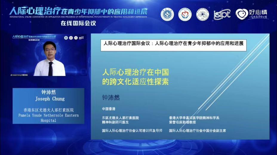 Prof. Joseph Chung, Pamela Youde Nethersole Eastern Hospital, gave a speech on exploring the cultural adaptation of IPT in China.