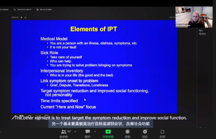 In her talk, Prof. HUANG Manli, elaborated the challenges and opportunities of using IPT in China. This speech was hosted by Prof. LIU Xuejun from Brain Hospital of Hunan Province.