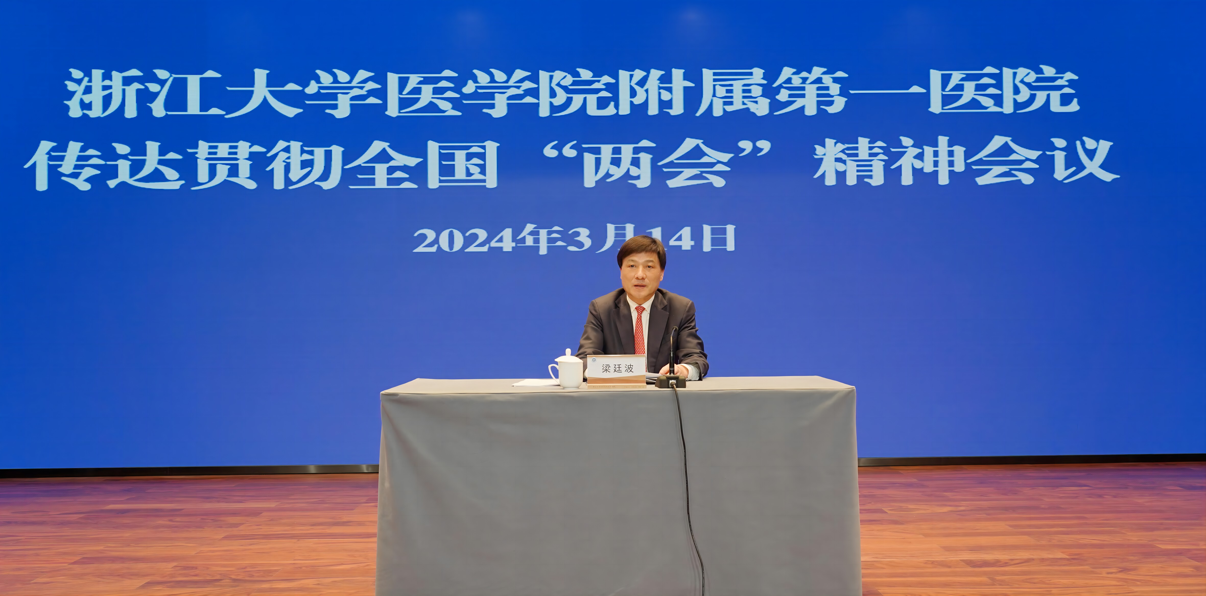 3月14日,浙江大学医学院附属第一医院召开传达贯彻全国“两会”精神会议。刚刚参加全国“两会”回杭的全国人大代表、浙大一院党委书记梁廷波传达习近平总书记在全国“两会”期间的重要讲话精神和全国“两会”精神,就认真落实浙江大学传达贯彻全国“两会”精神会议要求进行再部署、再明确。