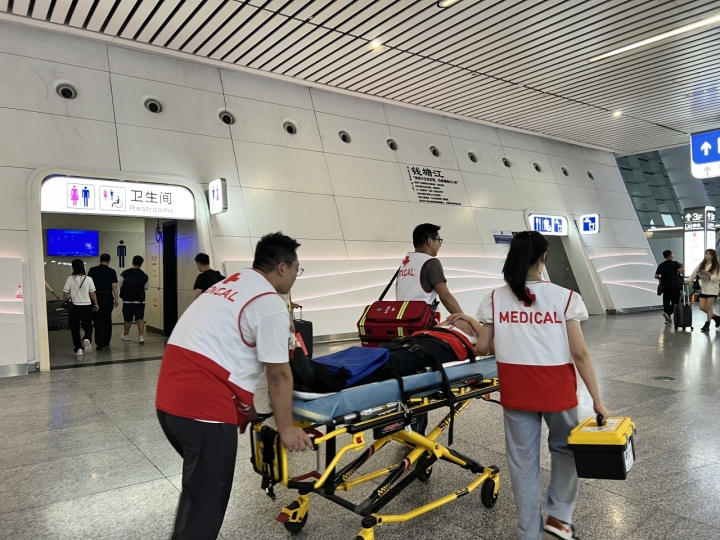 “杭州东站作为交通枢纽,面积大、人流多、空间开放,保障难度大,不过我们已经做好了充分准备。”王浩如介绍,此前浙大一院医务部等多部门工作人员和医疗保障团队已多次实地踩点、对接。医疗团队入驻后立刻梳理救护线路,携带40多斤的急救包和担架等设备反复前往东站到达层、出发层、站台层等七个点位实地测试救援时间,优化服务流程、完善应急预案。