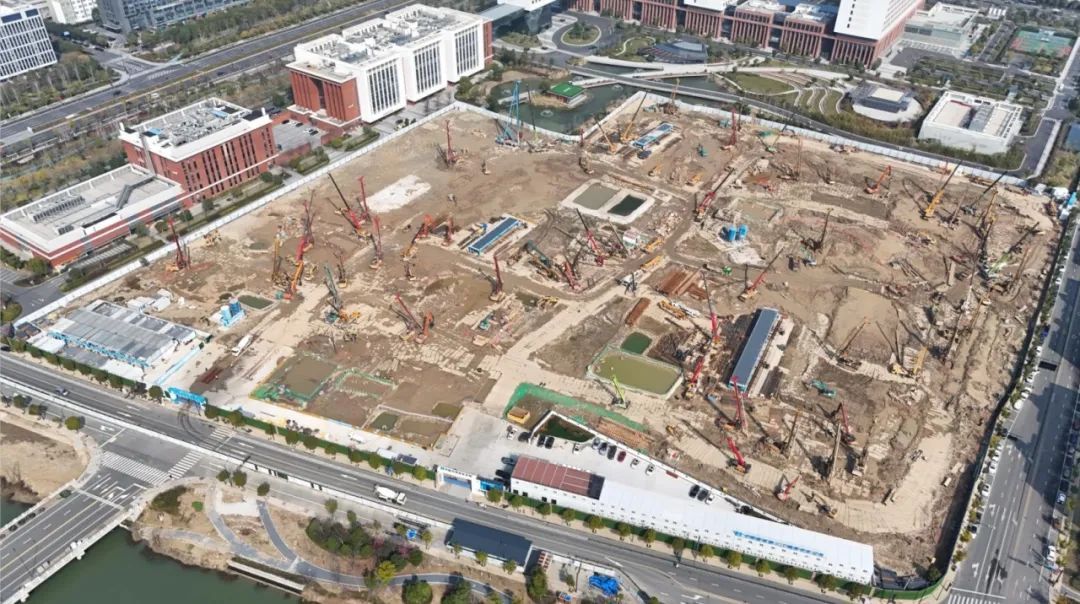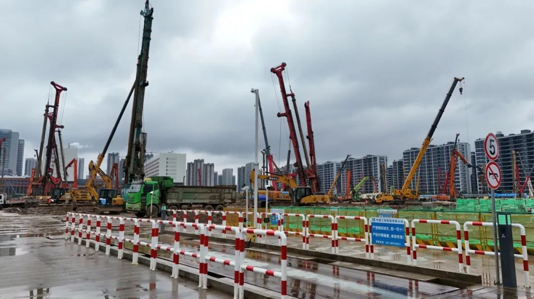 项目由中建三局华东公司承建,于2023年11月进场施工。目前桩基工程完成50%,完成桩基施工约4421根桩,到岗人员350余人,全力冲刺工程桩施工目标。
