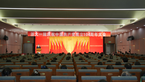 6月30日,浙江大学医学院附属第一医院庆祝中国共产党成立104周年大会在庆春院区10号楼3楼学术报告厅召开。医院党委委员、“光荣在党50年”纪念章获得者、党支部书记、支委代表、研究生党员代表和新党员代表等参加了大会。