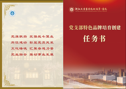 为庆祝中国共产党成立104周年,院党委启动了全院第一批“党支部特色品牌建设”培育创建活动。对标医院高质量建设国家医学中心的战略目标,在党支部标准化规范化建设的基础上,围绕“支部亮品牌 党员作表率”,为40个党支部颁发培育创建任务书。希望党支部通过一年的培育创建期,对标先进,先行先试,找准党建与医疗特色、学科建设、科研创新、管理服务等融合点,深化“一支部一品牌”建设,锻造一批浙一特色党建品牌。