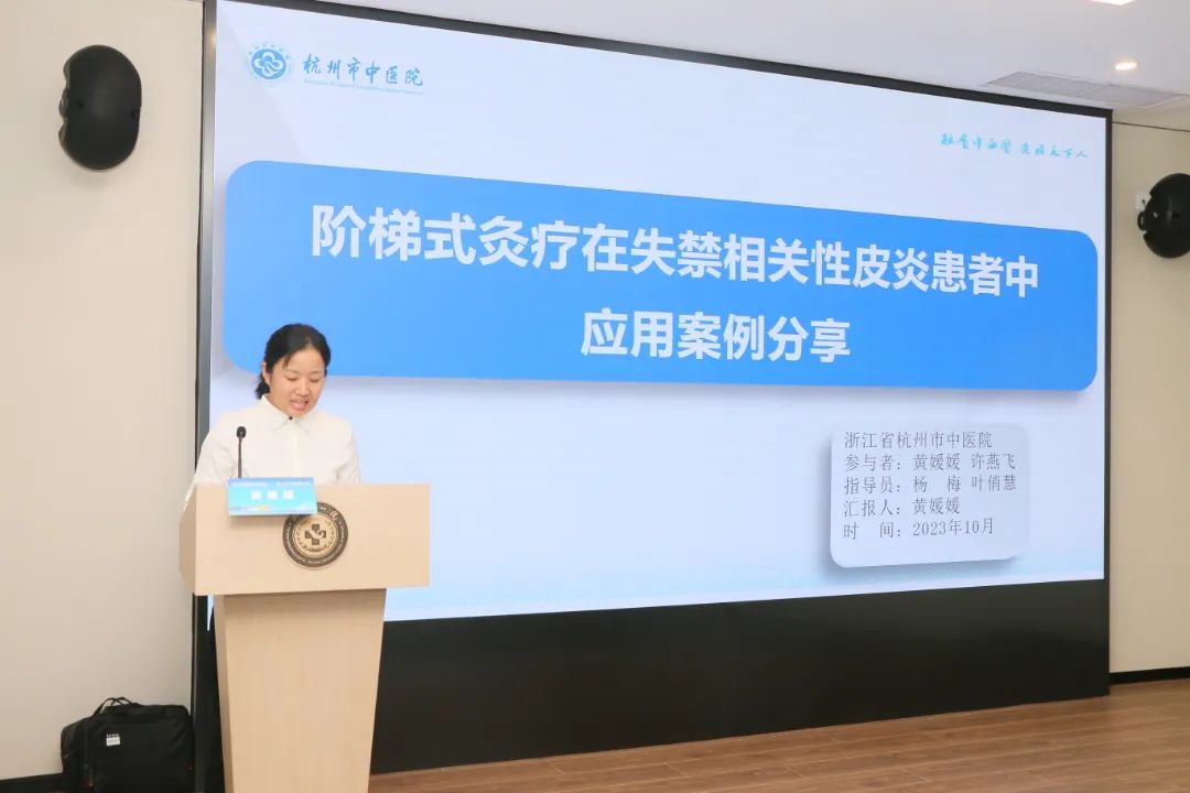 下午,专场案例和论文讨论环节由浙江省抗癌协会肿瘤专委会委员潘喆女士主持。浙江大学医学院附属第一医院倪晓波、连云港市第二人民医院于秀娟以及杭州市中医院黄媛媛就“一例肠外瘘“造口化”患者的护理、一例足外伤术后切口坏死感染患者的护理以及阶梯式灸疗在失禁相关性皮炎中的应用案例做了经验分享,现场学员表示收获颇多。