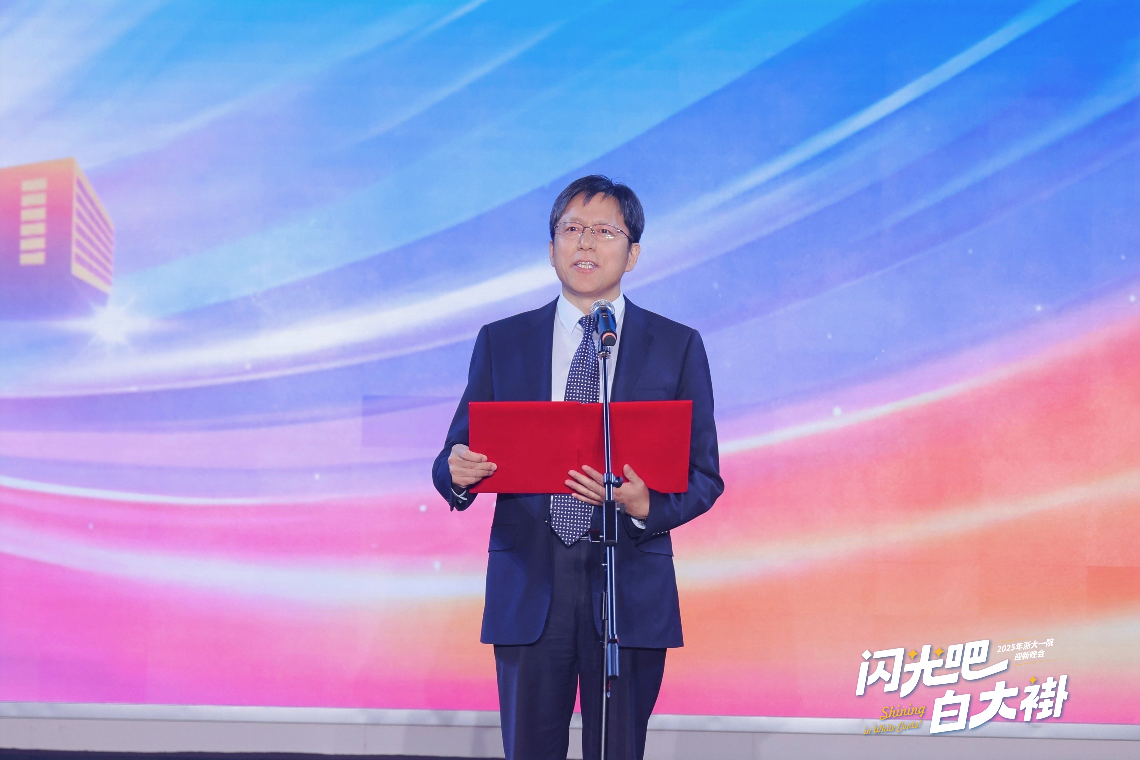 浙大一院党委书记顾国煜代表医院党委向新职工表示热烈欢迎,以及对近年来医院青年始终以昂扬向上的姿态立足本职岗位建功新时代表示了高度的肯定。他指出,要牢记习近平总书记“忠诚、敏锐、活泼、实干”的嘱托,高度重视青年成长,持续完善青年人才培养体系,将青春热血注入救死扶伤的伟大事业中,用实际行动践行健康中国战略,要继续让身上的白大褂在关键时刻熠熠生辉,闪耀出“浙一光芒”。他提出三点希望: