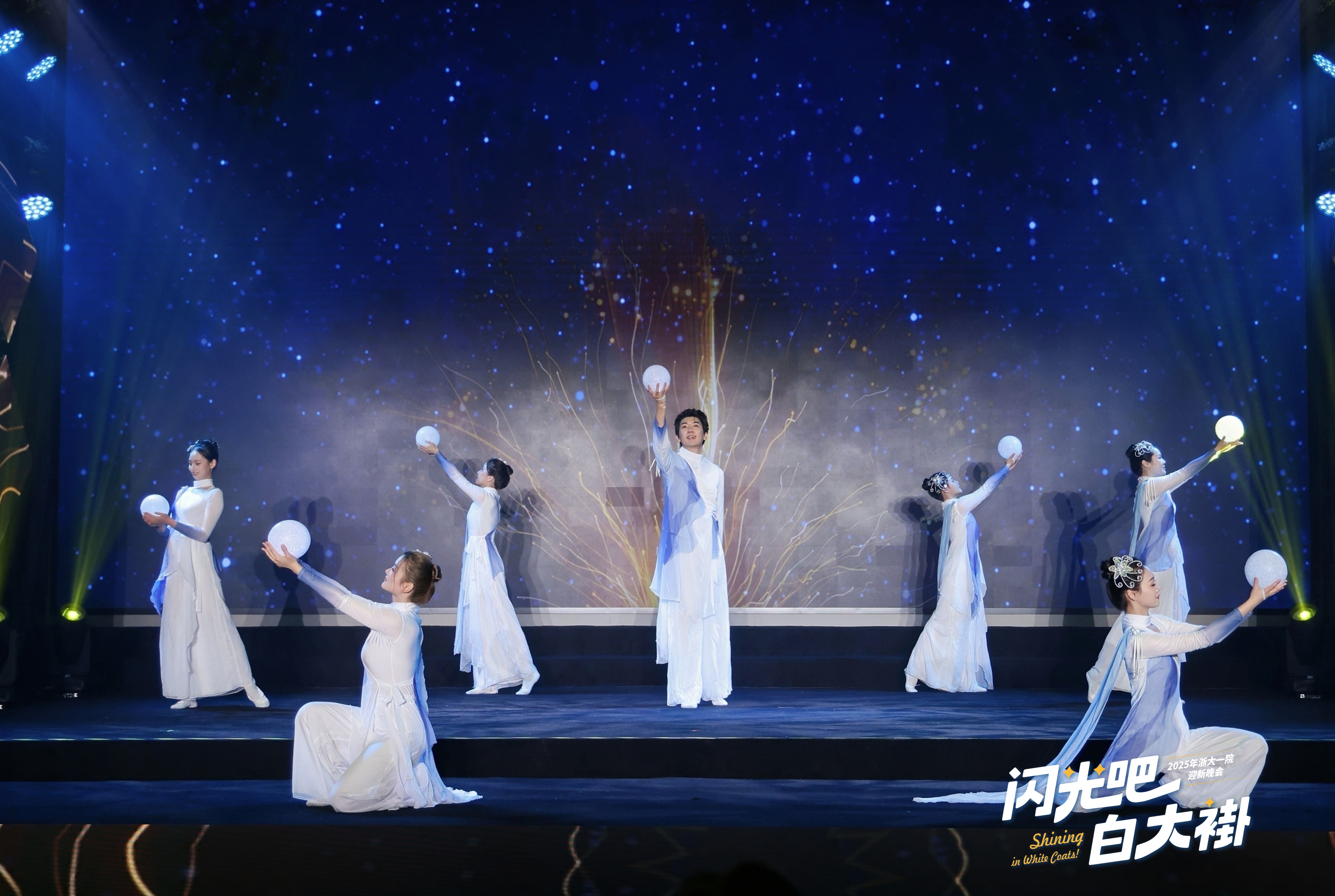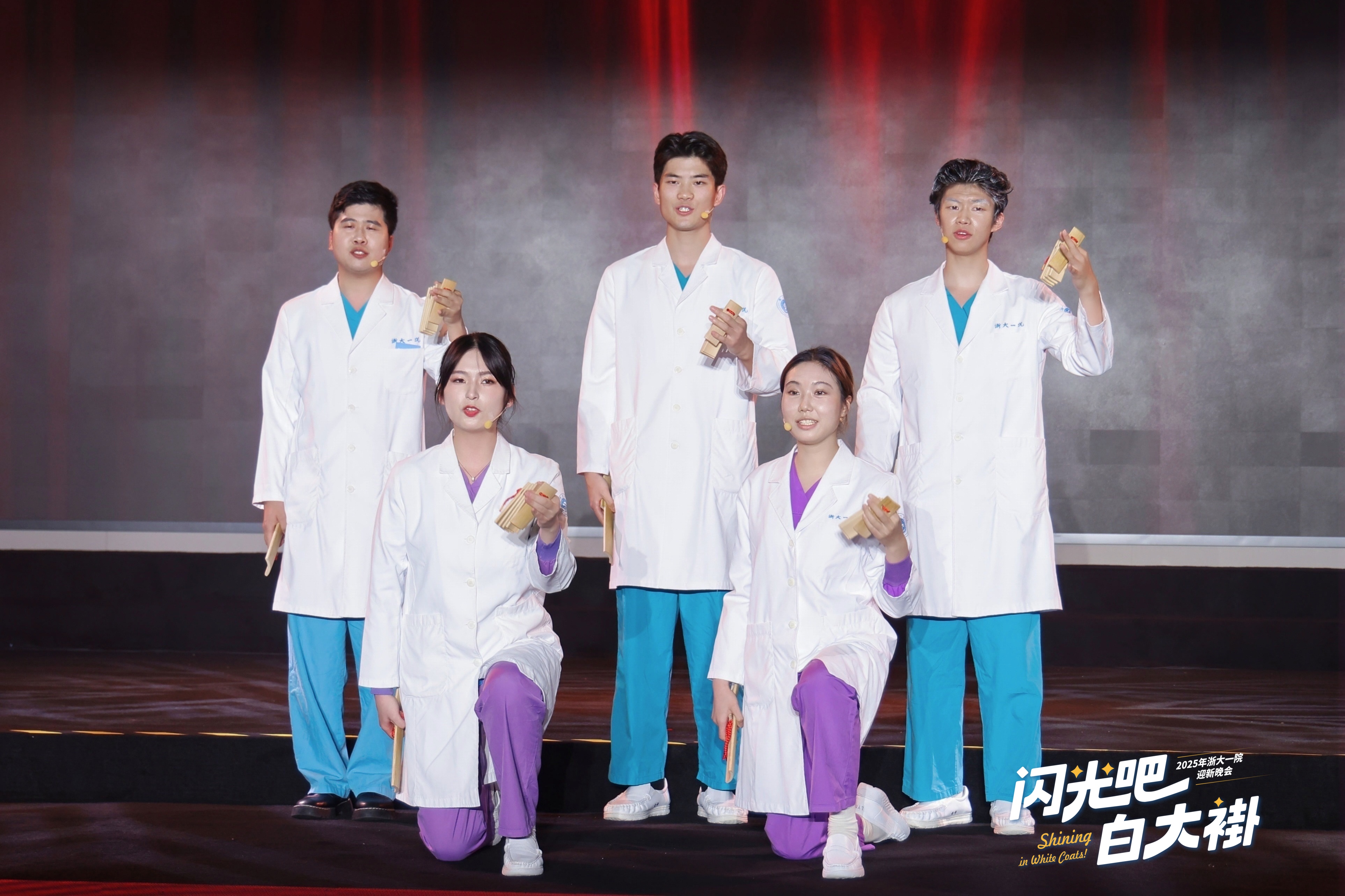 这场以“闪光吧!白大褂”为主题的晚会,共分为三个篇章,通过情景剧、歌舞、新说唱、对话故事等表演形式,完美展现了“浙一人”们用品德去擦亮、用技术去锻造、用仁爱去温暖、用奉献去诠释的浙一精神,让身上这件白大褂,焕发出更加耀眼夺目的时代光芒!